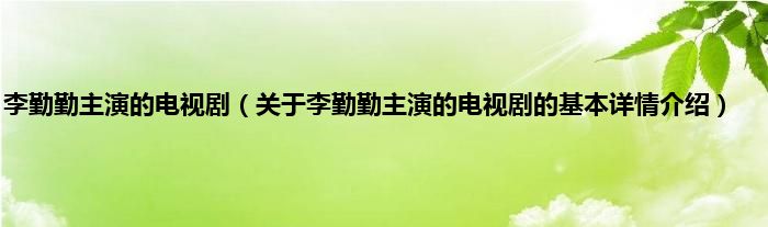 本文关于李勤勤主演的电视剧的基本详情介绍就讲解完毕,希望对大家有所帮助。
