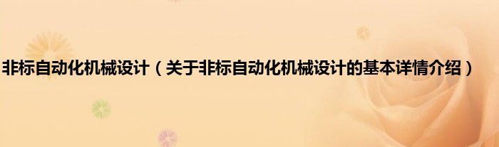 1、可以通过设计一些特殊的机器得以解决的问题叫做非标机械设计。