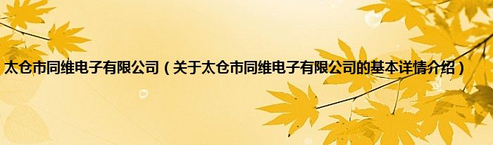 本文关于太仓市同维电子有限公司的基本详情介绍就讲解完毕,希望对大家有所帮助。