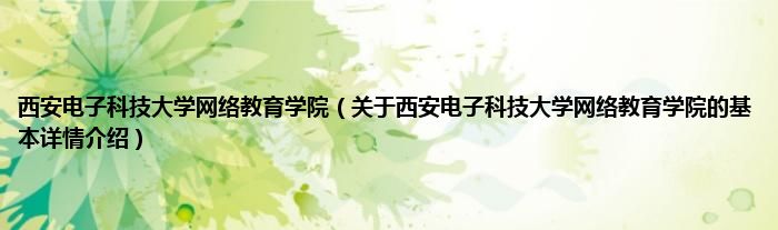 本文关于西安电子科技大学网络教育学院的基本详情介绍就讲解完毕,希望对大家有所帮助。