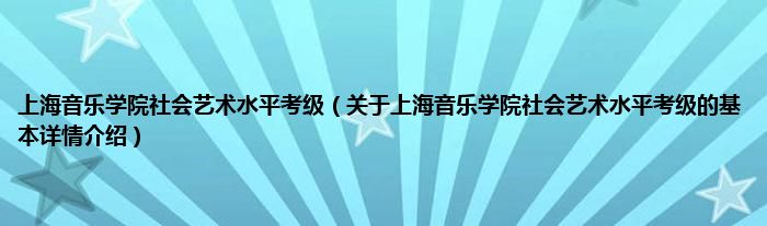 本文关于上海音乐学院社会艺术水平考级的基本详情介绍就讲解完毕,希望对大家有所帮助。