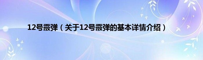 本文关于12号霰弹的基本详情介绍就讲解完毕,希望对大家有所帮助。