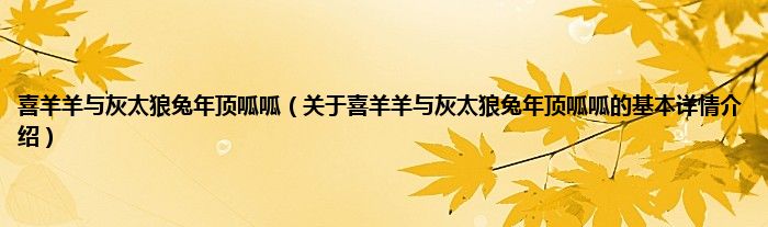 本文关于喜羊羊与灰太狼兔年顶呱呱的基本详情介绍就讲解完毕,希望对大家有所帮助。