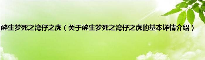 本文关于醉生梦死之湾仔之虎的基本详情介绍就讲解完毕,希望对大家有所帮助。