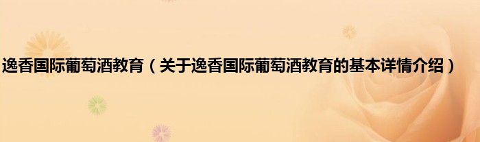 本文关于逸香国际葡萄酒教育的基本详情介绍就讲解完毕,希望对大家有所帮助。