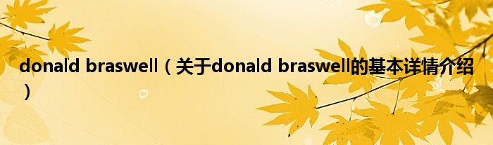 本文关于donald braswell的基本详情介绍就讲解完毕,希望对大家有所帮助。