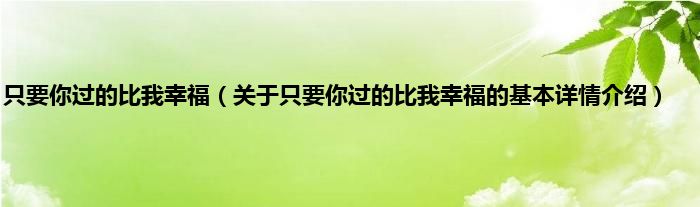 本文关于只要你过的比我幸福的基本详情介绍就讲解完毕,希望对大家有所帮助。