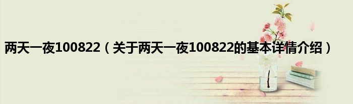本文关于两天一夜100822的基本详情介绍就讲解完毕,希望对大家有所帮助。