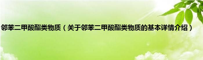 本文关于邻苯二甲酸酯类物质的基本详情介绍就讲解完毕,希望对大家有所帮助。