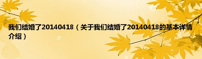 本文关于我们结婚了20140418的基本详情介绍就讲解完毕,希望对大家有所帮助。