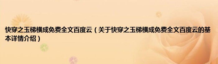 本文关于快穿之玉梯横成免费全文百度云的基本详情介绍就讲解完毕,希望对大家有所帮助。
