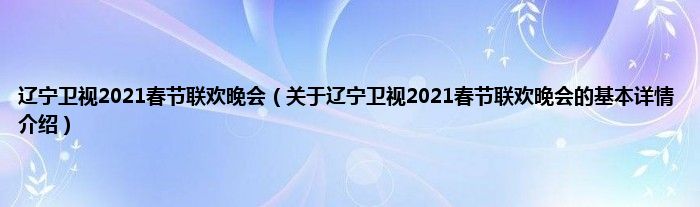 本文关于辽宁卫视2021春节联欢晚会的基本详情介绍就讲解完毕,希望对大家有所帮助。