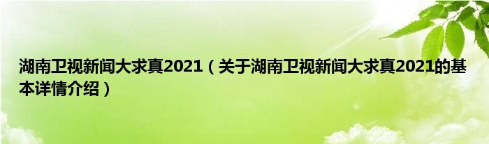 本文关于湖南卫视新闻大求真2021的基本详情介绍就讲解完毕,希望对大家有所帮助。