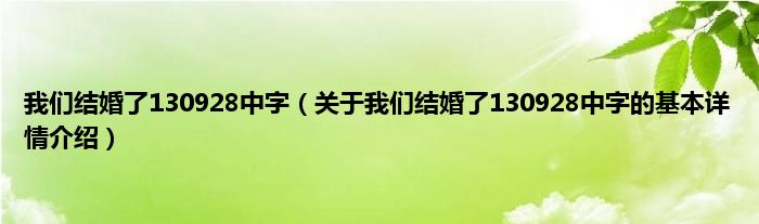 本文关于我们结婚了130928中字的基本详情介绍就讲解完毕,希望对大家有所帮助。