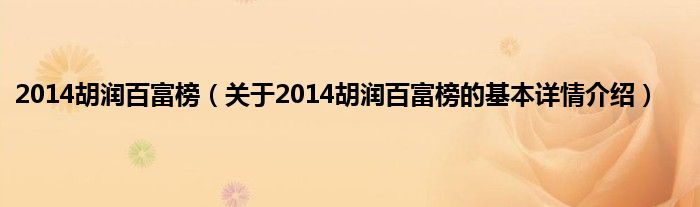 本文关于2014胡润百富榜的基本详情介绍就讲解完毕,希望对大家有所帮助。