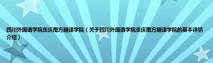 本文关于四川外国语学院重庆南方翻译学院的基本详情介绍就讲解完毕,希望对大家有所帮助。