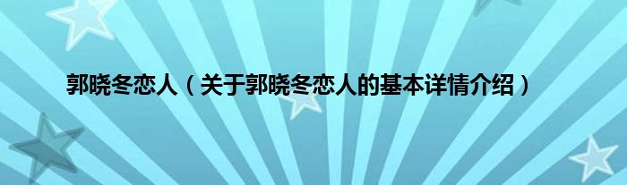 本文关于郭晓冬恋人的基本详情介绍就讲解完毕,希望对大家有所帮助。