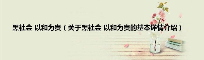 本文关于黑社会 以和为贵的基本详情介绍就讲解完毕,希望对大家有所帮助。