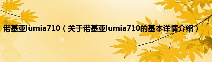本文关于诺基亚lumia710的基本详情介绍就讲解完毕,希望对大家有所帮助。