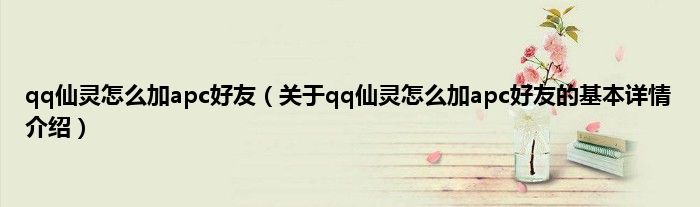 本文关于qq仙灵怎么加apc好友的基本详情介绍就讲解完毕,希望对大家有所帮助。