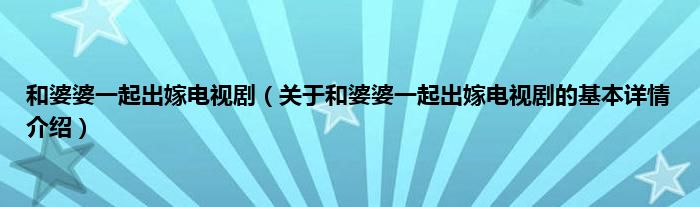 本文关于和婆婆一起出嫁电视剧的基本详情介绍就讲解完毕,希望对大家有所帮助。
