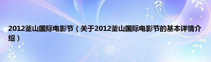 本文关于2012釜山国际电影节的基本详情介绍就讲解完毕,希望对大家有所帮助。