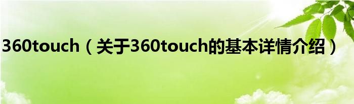 本文关于360touch的基本详情介绍就讲解完毕,希望对大家有所帮助。