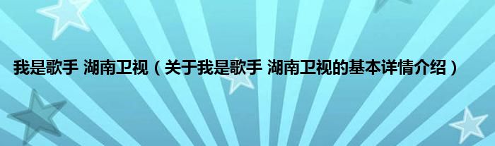 本文关于我是歌手 湖南卫视的基本详情介绍就讲解完毕,希望对大家有所帮助。