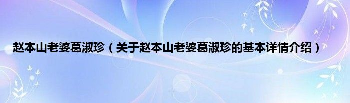 本文关于赵本山老婆葛淑珍的基本详情介绍就讲解完毕,希望对大家有所帮助。