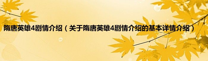 本文关于隋唐英雄4剧情介绍的基本详情介绍就讲解完毕,希望对大家有所帮助。