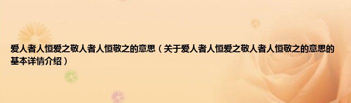 本文关于爱人者人恒爱之敬人者人恒敬之的意思的基本详情介绍就讲解完毕,希望对大家有所帮助。