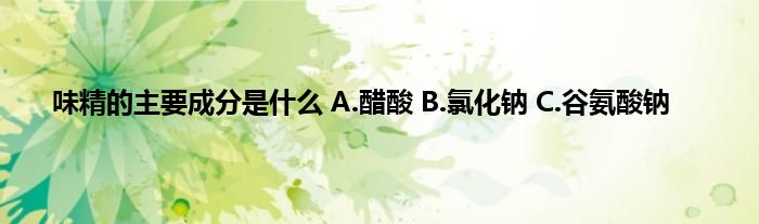 以上就是【味精的主要成分是什么 A.醋酸 B.氯化钠 C.谷氨酸钠】相关内容。