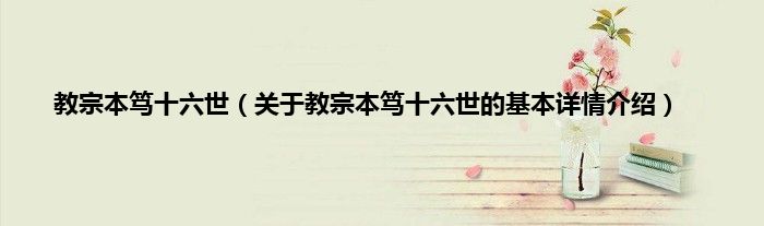 本文关于教宗本笃十六世的基本详情介绍就讲解完毕,希望对大家有所帮助。