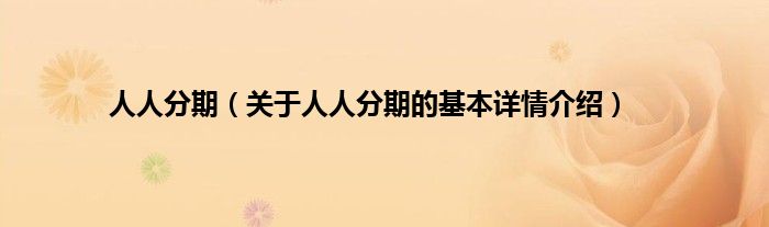 本文关于人人分期的基本详情介绍就讲解完毕,希望对大家有所帮助。