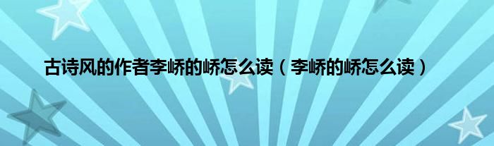 以上就是【古诗风的作者李峤的峤怎么读,李峤的峤怎么读】相关内容。