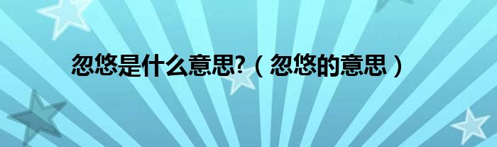 以上就是【忽悠是什么意思?,忽悠的意思】相关内容。