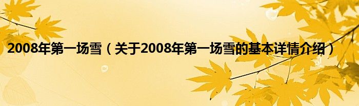 本文关于2008年第一场雪的基本详情介绍就讲解完毕,希望对大家有所帮助。