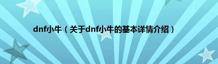 dnf小牛(关于dnf小牛的基本详情介绍)