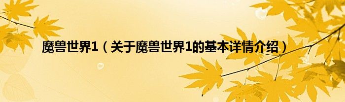 本文关于魔兽世界1的基本详情介绍就讲解完毕,希望对大家有所帮助。