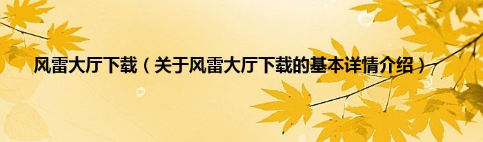 本文关于风雷大厅下载的基本详情介绍就讲解完毕,希望对大家有所帮助。
