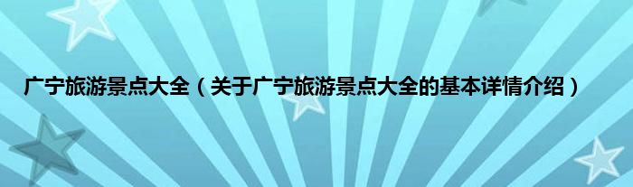 广宁旅游景点大全(关于广宁旅游景点大全的基本详情介绍)