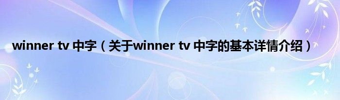 本文关于winner tv 中字的基本详情介绍就讲解完毕,希望对大家有所帮助。