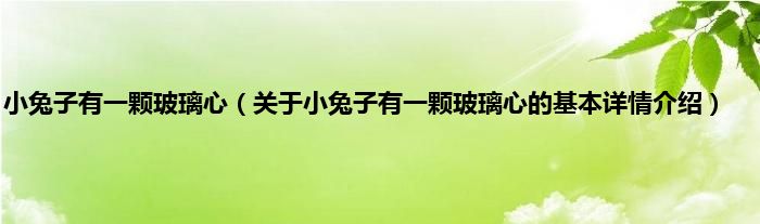 大家好我是小蝌蚪,小兔子有一颗玻璃心,关于小兔子有一颗玻璃心的基本详情介绍很多人还不知道,那么现在让我们一起来看看吧!