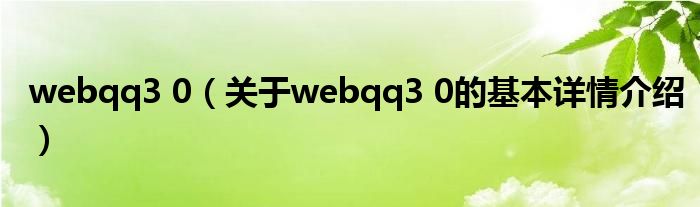 本文关于webqq3 0的基本详情介绍就讲解完毕,希望对大家有所帮助。
