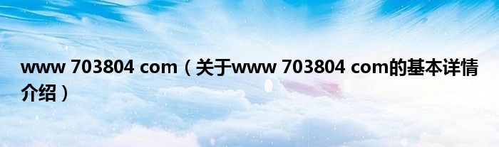 本文关于www 703804 com的基本详情介绍就讲解完毕,希望对大家有所帮助。