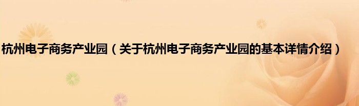 本文关于杭州电子商务产业园的基本详情介绍就讲解完毕,希望对大家有所帮助。