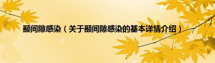本文关于颞间隙感染的基本详情介绍就讲解完毕,希望对大家有所帮助。