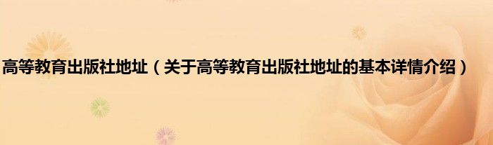 本文关于高等教育出版社地址的基本详情介绍就讲解完毕,希望对大家有所帮助。
