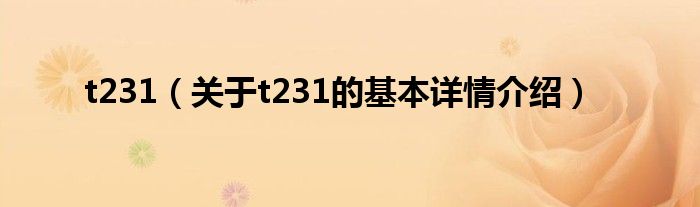 本文关于t231的基本详情介绍就讲解完毕,希望对大家有所帮助。