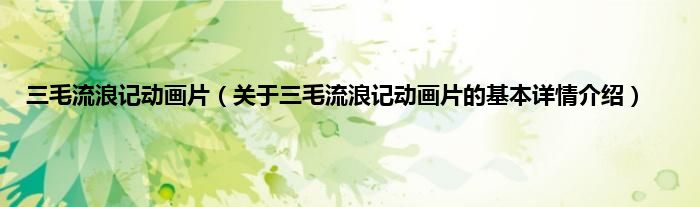 本文关于三毛流浪记动画片的基本详情介绍就讲解完毕,希望对大家有所帮助。